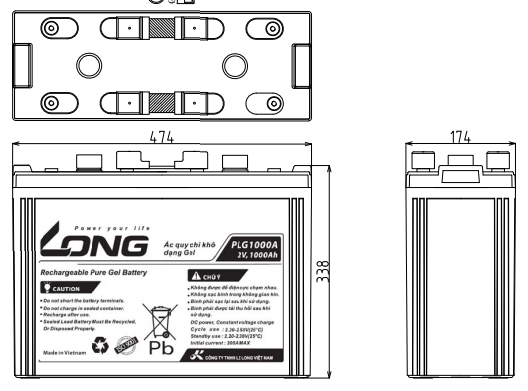 | PLG1000A | 2V-1000Ah (10HR) | 1 cell Pure Gel / Non-Spillable / Maintenance-Free |