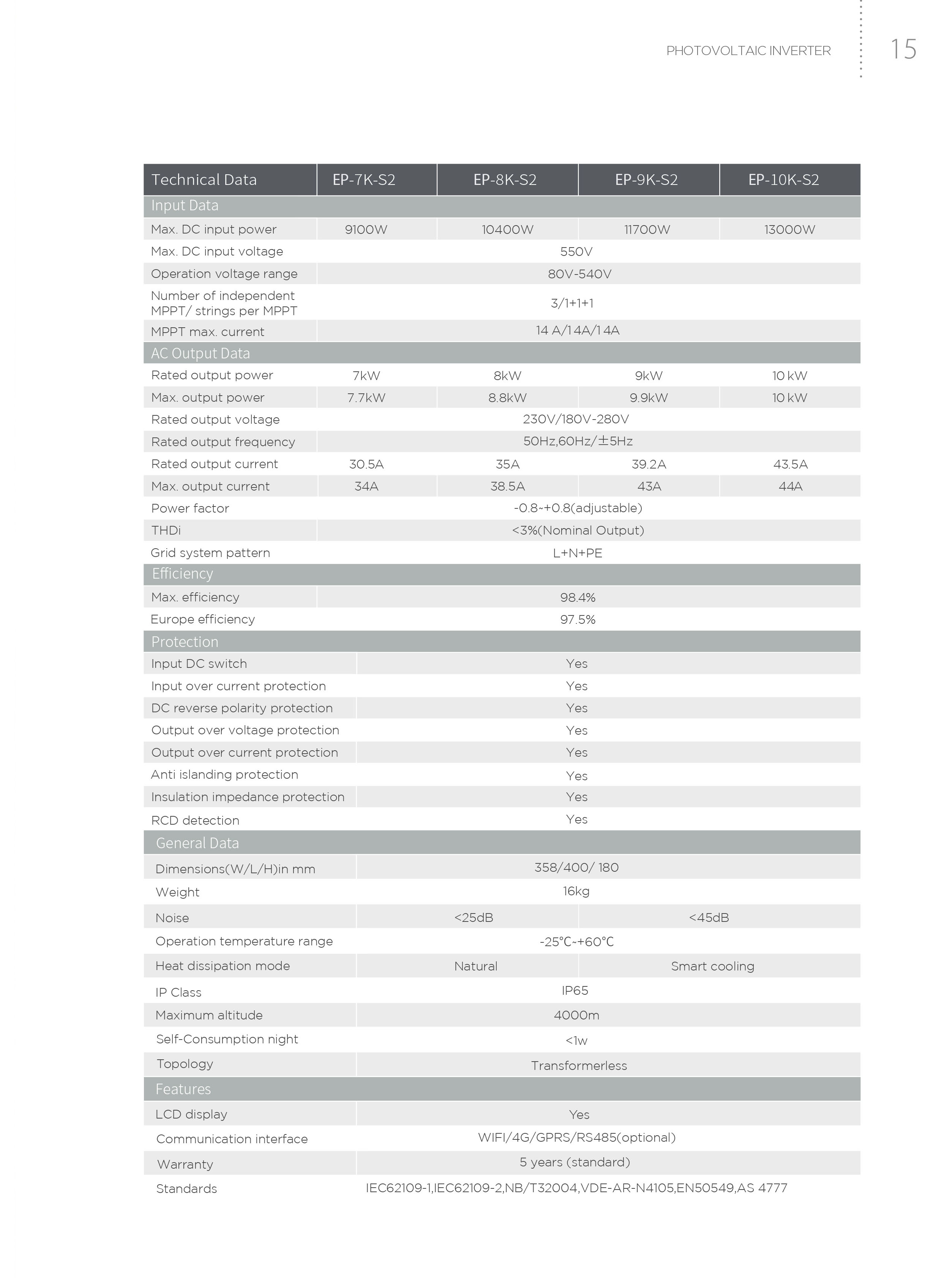 Inverter On grid Ecopower 10KW 1 pha (EP-10K-S2) có những tính năng nổi trội sau:
