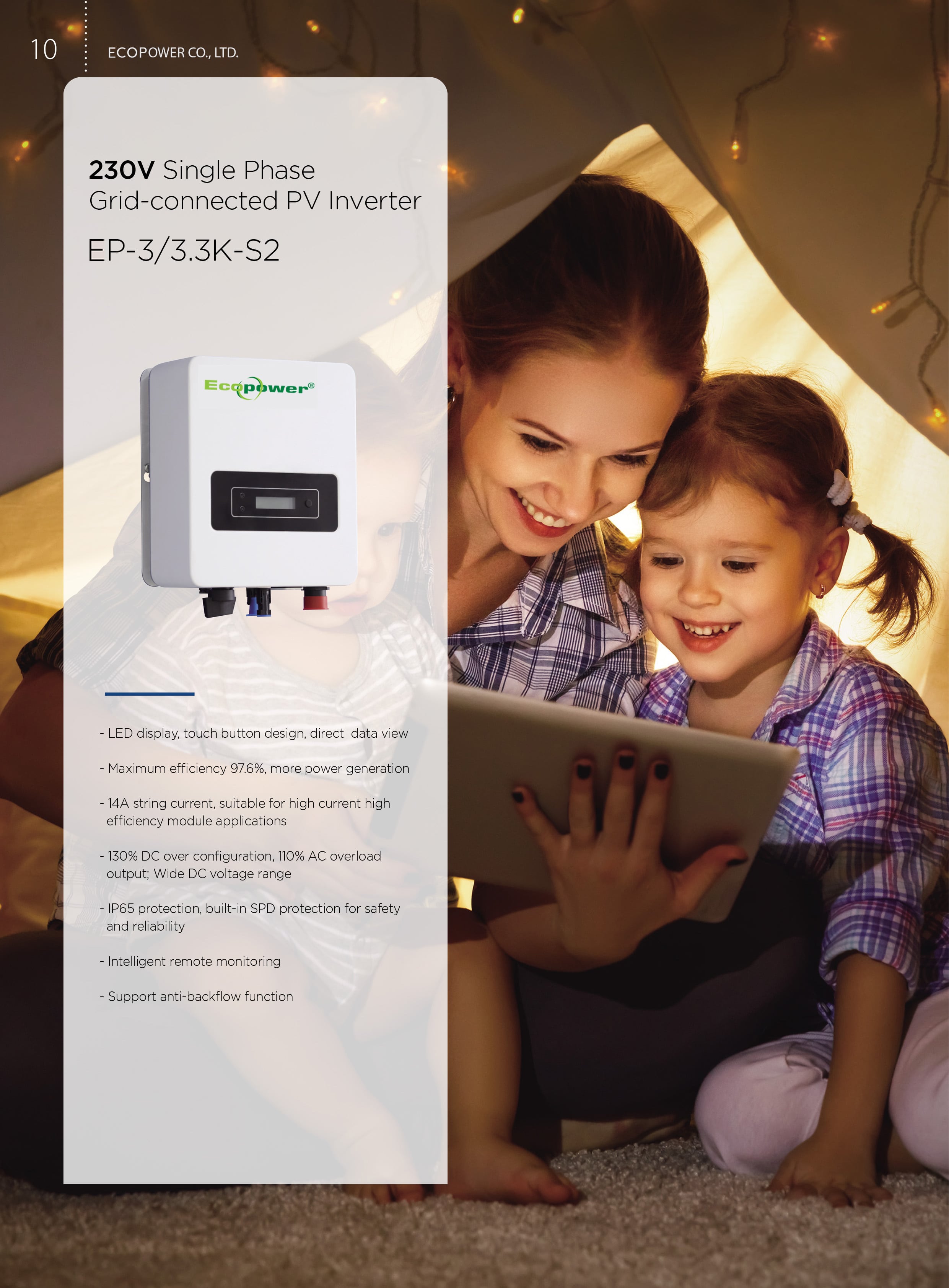 Inverter On-grid Ecopower 3KW EP-3K-S3 là một sản phẩm tốt cho những người muốn sử dụng điện năng lượng mặt trời để cung cấp điện cho gia đình hoặc văn phòng làm việc của mình.