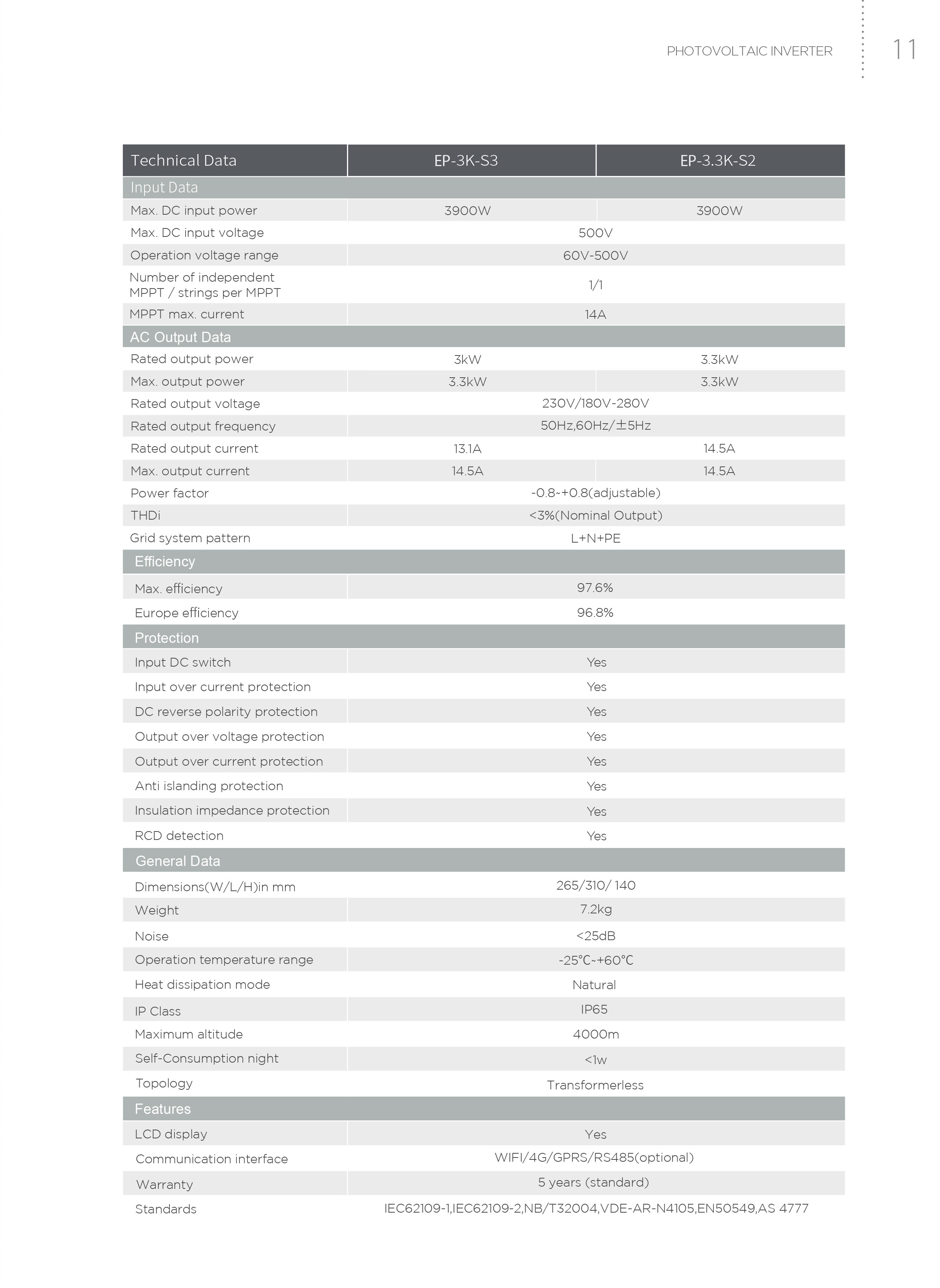 Inverter On-grid Ecopower 3KW EP-3K-S3 có những tính năng nổi trội sau: