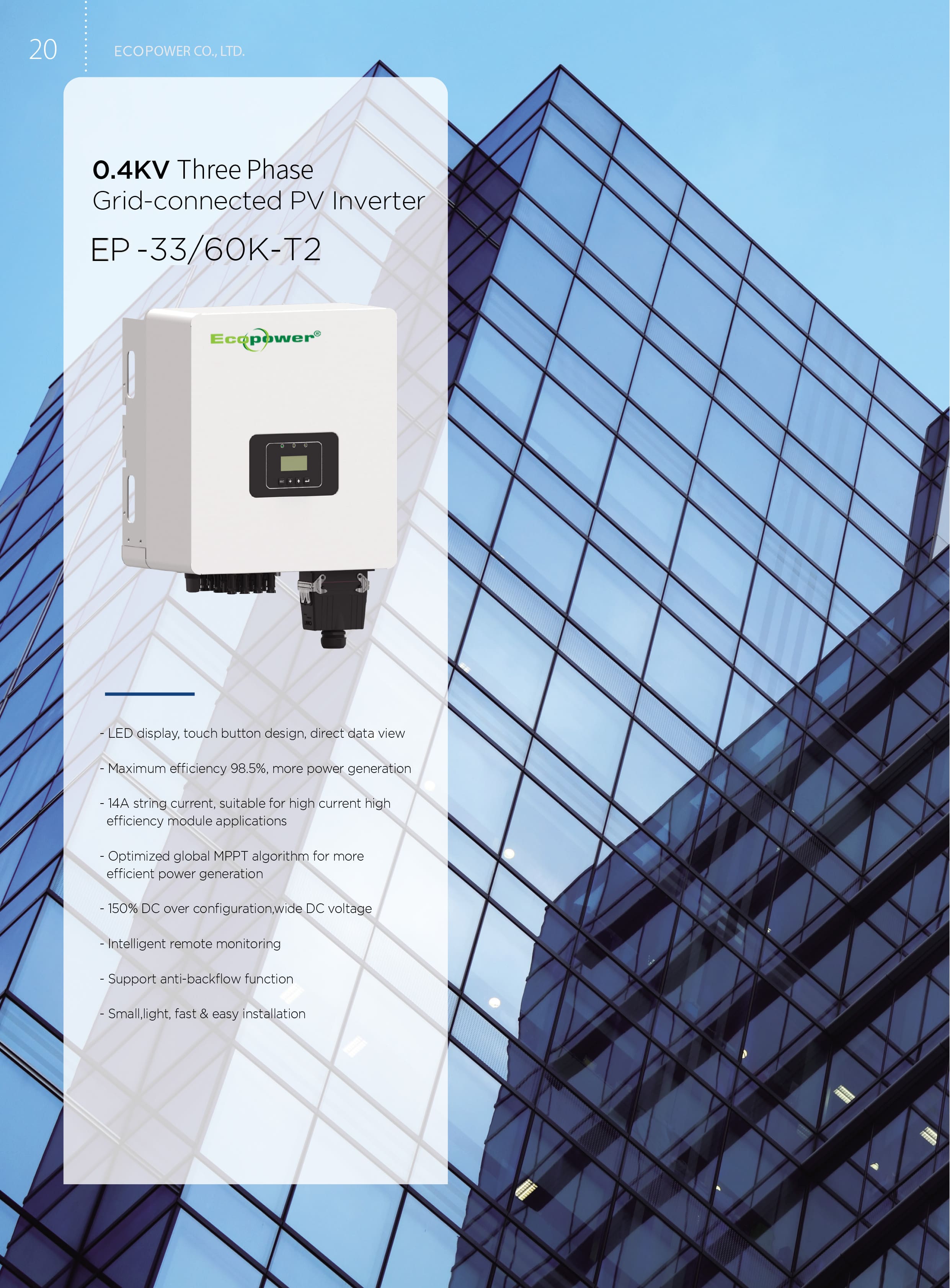 Inverter Hòa Lưới Ecopower 40KW 3 pha (EP-40K-T2) sản phẩm được lựa chọn cho hệ thống PV công nghiệp và thương mại