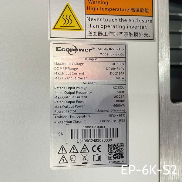 Inverter On-grid Ecopower 6KW EP-6K-S2 là một sản phẩm tốt cho những người muốn sử dụng điện năng lượng mặt trời để cung cấp điện cho gia đình hoặc văn phòng làm việc của mình.