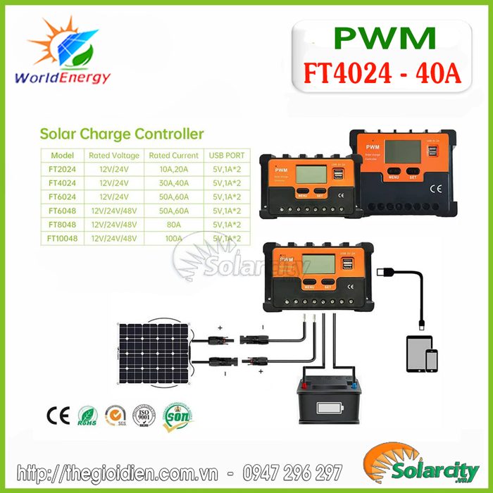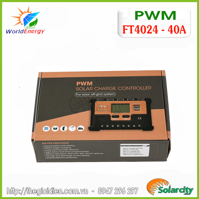 Thông số kỹ thuật Bộ điều khiển sạc pin mặt trời PWM 40A